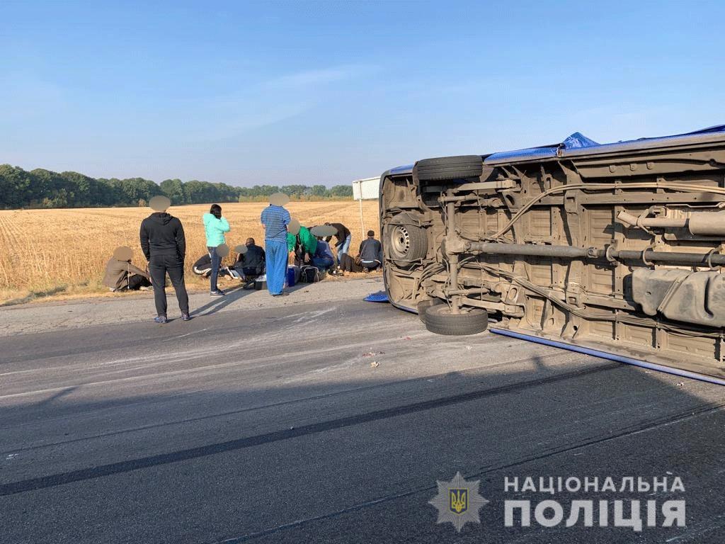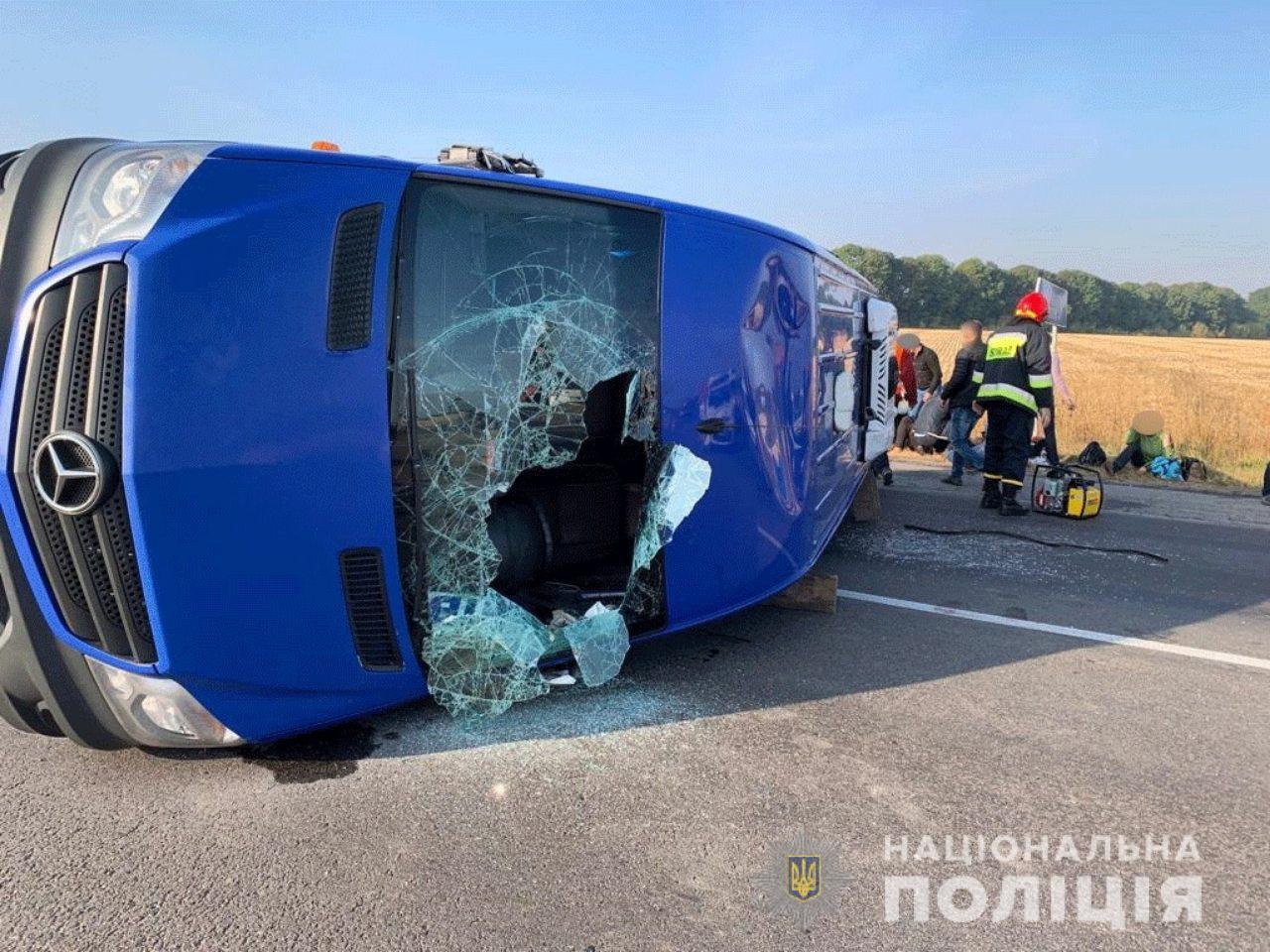Авария случилась на 152 км автодороги Киев - Одесса. В результате ДТП пострадали 12 человек, пятеро госпитализированы, один из пострадавших умер в больнице.