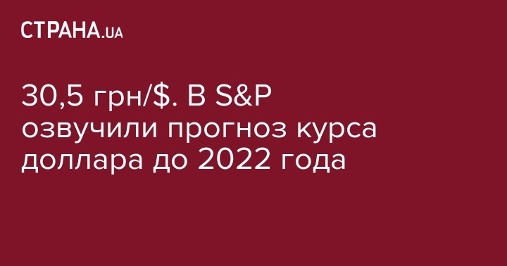 30,5 грн/$. В S&P озвучили прогноз курса доллара до 2022 года