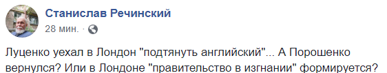 "Луценко уехал в Лондон "подтянуть английский"... А Порошенко вернулся? Или в Лондоне "правительство в изгнании" формируется?"