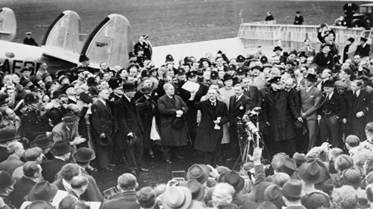 Британский премьер Чемберлен после возвращения из Мюнхена в Англию, фото: wikipedia.org
