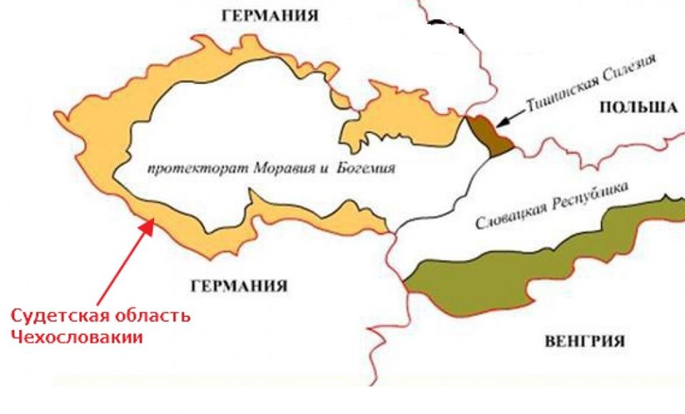 В результате данного соглашения этими западными странами было санкционировано начало захвата Чехословакии фашистской Германией. А точнее, оно предусматривало передачу Германии Судетской области Чехословакии (со всеми сооружениями и укреплениями, фабриками, заводами, запасами сырья, путями сообщения…), а также удовлетворение за счет Чехословакии территориальных притязаний Венгрии и Польши.