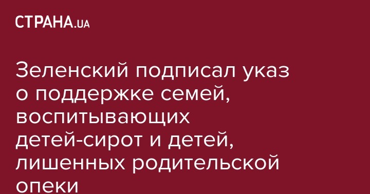 Президент Владимир Зеленский подписал указ №721/2019 о некоторых вопросах обеспечения прав и законных интересов детей-сирот, детей, лишенных родительской опеки, развития и поддержки семейных форм воспитания детей.