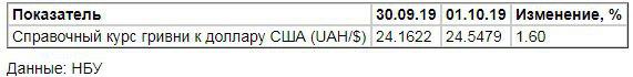 Так, по состоянию на 12:00 1 октября сравочный курс гривни к доллару США на межбанковском валютном рынке составляет 24,55 грн/$1.