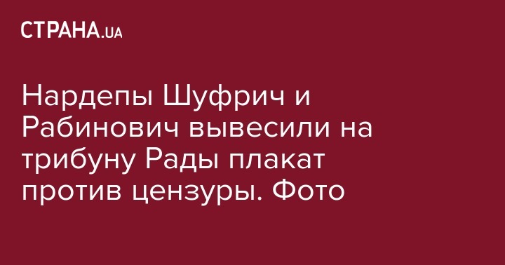 Нардепы Шуфрич и Рабинович вывесили на трибуну Рады плакат против цензуры. Фото