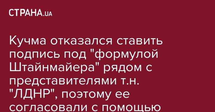 Представитель Украины в Трехсторонней контактной группе в Минске Леонид Кучма, который 1 октября подписал "формулу Штайнмайера", не хотел оставлять свою подпись на одном документе с представителями т.н. "ЛНР" и "ДНР". Об этом пишет РБК