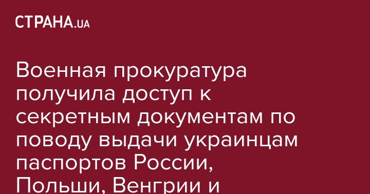 Постановление подписала судья Печерского райсуда Киева Светлана Смык. Военная прокуратура получит доступ к оригиналам документов Совета национальной безопасности и обороны Украины, которые представляют государственную тайну. В них содержатся сведения о массовой выдаче паспортов граждан Венгрии, Румынии, Польши и России соответственно жителям западных регионов Украины и временно оккупированных территорий Донецкой и Луганской областей.
