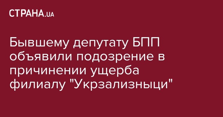 Бывшему депутату БПП объявили подозрение в причинении ущерба филиалу "Укрзализныци"