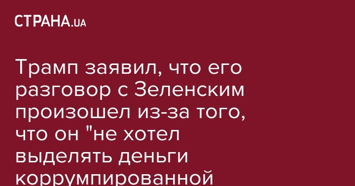 Президент США Дональд Трамп заявил, что его июльский телефонный разговор с президентом Украины Владимиром Зеленским касался коррупции, и он не хотел бы выделять деньги коррумпированной стране.