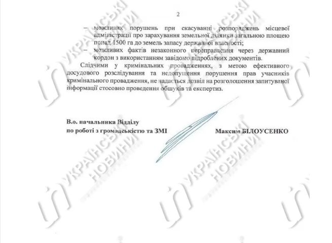 В ГБР отмечают, что следователи не дали разрешение на разглашение информации о проведении обысков и экспертиз для недопущения нарушения прав участников уголовных производств.