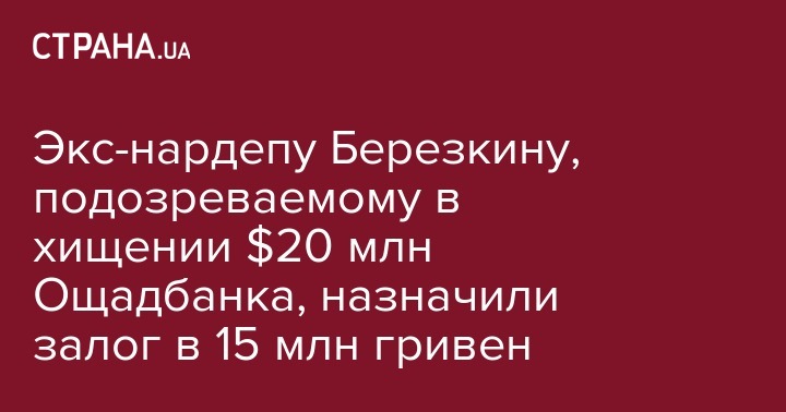 "Суд избрал залог 14 млн 983 тысяч гривен. Также суд возложил обязанности: не отлучатся из населенного пункта, в котором он проживает, без разрешения следователя, прокурора и суда, сообщать детективу и суду о смене своего места проживания, воздержаться от общения с некоторыми свидетелями по делу и сдать на хранение заграничный паспорт", - сказала адвокат и добавила, что суд отказался обязать Березкина носить электронный браслет.