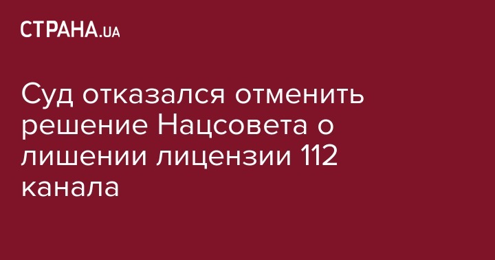 Окружной административный суд Киева 3 октября отказался удовлетворить иск телеканала "112 Украина" об отмене решения Нацсовета по вопросам телевидения и радиовещания о лишении его лицензий. Об этом сообщается на сайте суда.