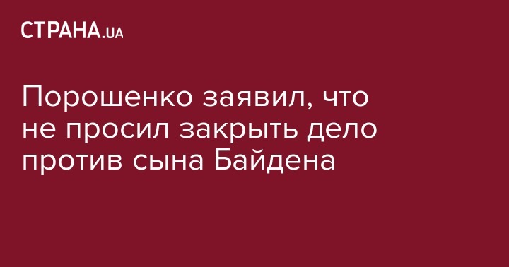 Порошенко заявил, что не просил закрыть дело против сына Байдена