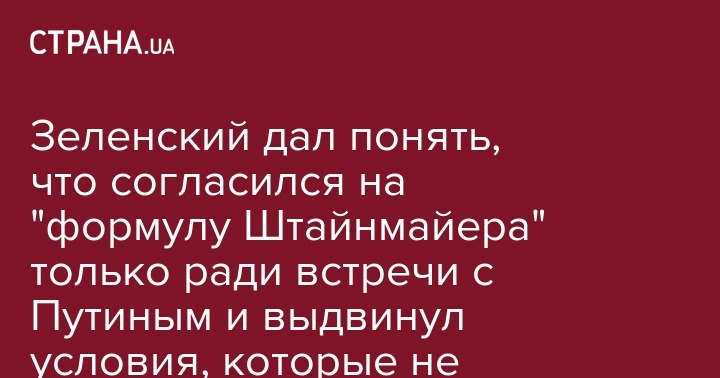 По его словам, согласование "формулы Штайнмайера" было непременным условием проведения этой встречи. И, со слов Зеленского выходит, что он согласился на это только ради того, чтоб увидется с Путиным.