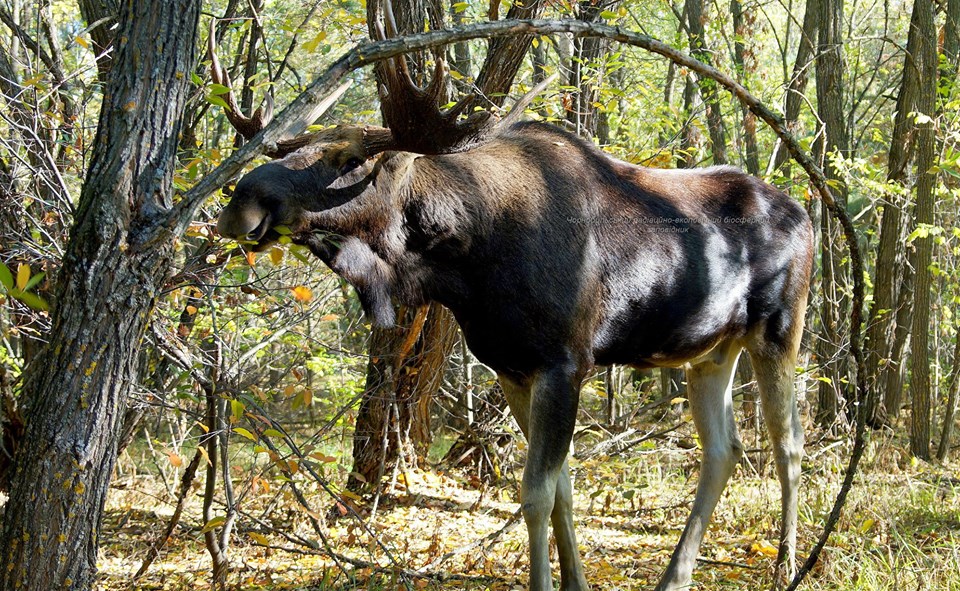 "Нашему сотруднику Станиславу Гуменюку удалось сделать несколько невероятных кадров этого великана. Но стоит помнить, что лось входит в десятку опасных животных и если вы наткнулись на него, то лучше полюбоваться издалека, сфотографировать и оставить это место", - говорится в сообщении.
