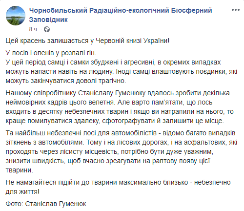 Также в посте напоминают о том, что наиболее опасны лоси для автомобилистов, поскольку известно много случаев столкновений с автомобилями.