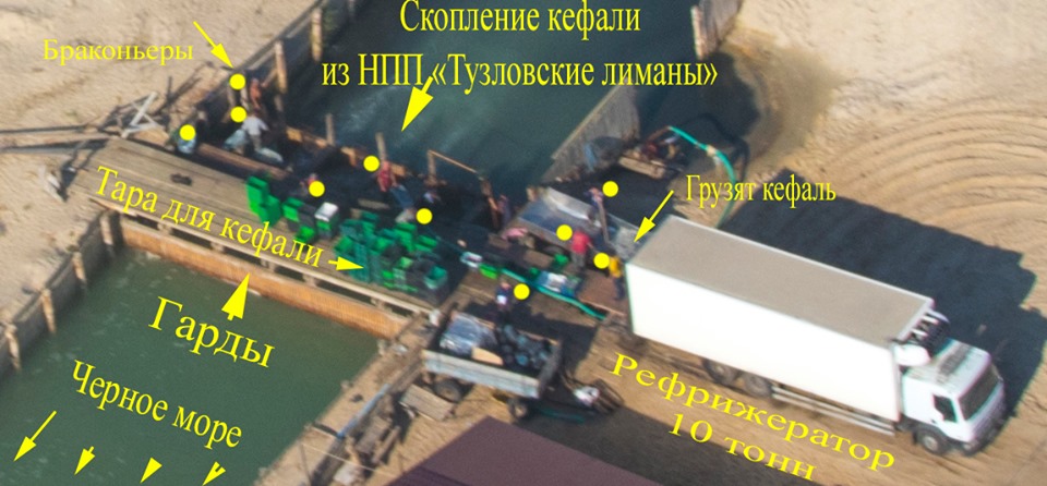 По словам Русева, ему удалось получить из инсайдерских источников фото с десятком браконьеров, грузящих кефаль в рефрижераторы. Все это происходит на оцепленной територии.