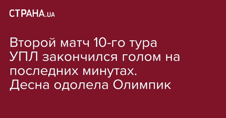 Второй матч 10-го тура УПЛ закончился голом на последних минутах. Десна одолела Олимпик