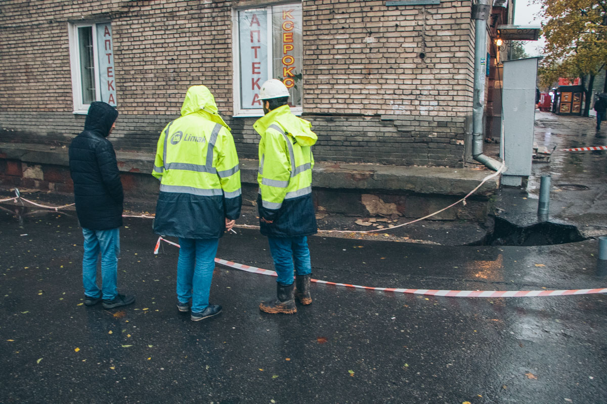 Из-за дождя и строительства метро по соседству, под зданием размыло песок. В следствие этого асфальт рпровалился, здание просело и по нему пошла трещина. С торца строения прямо на тротуар падали кирпичи, вода затекала под фундамент. Для того, чтобы дом окончательно не разрушился, яму, которую раскопали метростроители для прокладки коммуникаций, засыпали песком. Провал, что образовался под общежитием залили бетоном.