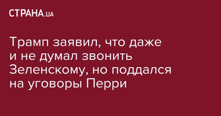 Президент США Дональд Трамп сказал, что не хотел звонить украинскому президенту Владимиру Зеленскому и сделал это по настойчивой просьбе министра энергетики Рика Перри. Об этом пишет Axios.