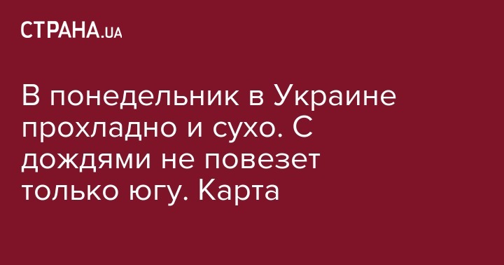 В понедельник в Украине прохладно и сухо. С дождями не повезет только югу. Карта