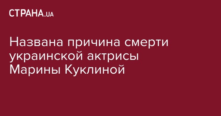Стала известна причина смерти украинской актрисы Марины Куклиной.
