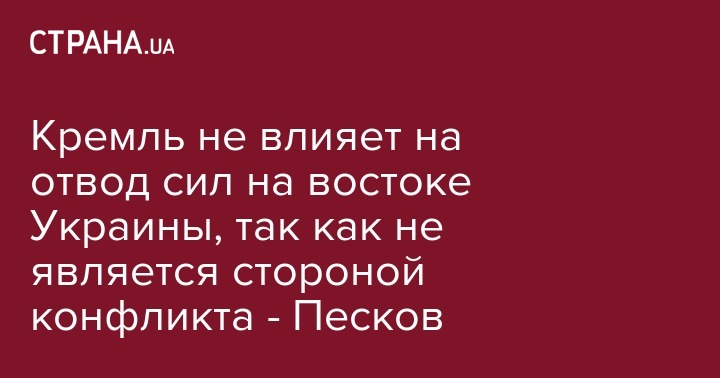 "Мы говорим о регулировании внутри украинского конфликта. Кремль, безусловно, имеет определенное влияние на республики Донбасса. Но вы знаете, что республики Донбасса - самостоятельные субъекты в урегулировании этого конфликта. Кремль не является стороной конфликта", - сказал Песков, отвечая на вопрос журналиста, может ли российская сторона гарантировать отвод войск от линии соприкосновения.