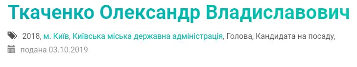 Народный депутат из фракции "Слуга народа" и бывший генеральный директор телеканала 1+1 Александр Ткаченко подал свою декларацию, где указал, что претендует на должность главы Киевской городской администрации.