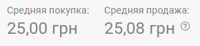 В обменках по состоянию на 08:00 средняя покупка 25,05 грн, средняя продажа - 25,15 грн.