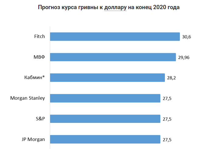 По прогнозу агентства Fitch, курс доллара в Украине в 2020 году достигнет 30,6 грн.