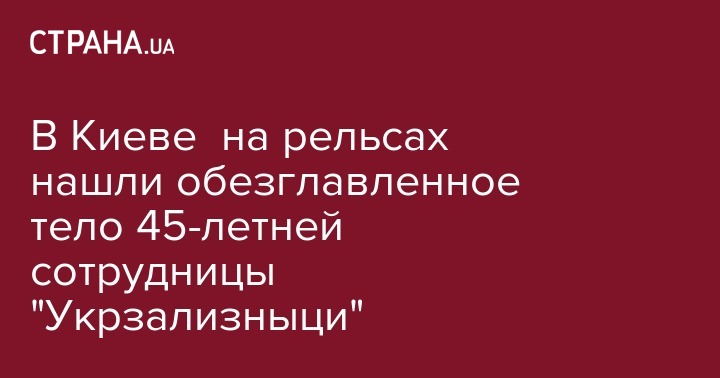 Обезглавленное тело женщины обнаружили в Киеве около 17:00 7 октября. Это произошло на территории Дарницкого железнодорожного депо, недалеко от улицы Привокзальной. Труп лежал на рельсах. Об этом сообщает "Информатор".
