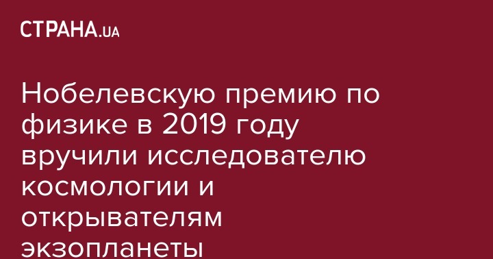 Половину премии присудили Джеймсу Пиблсу "за теоретические исследования в космологии", вторую - Мишелю Майору и Дидье Кело "за открытие экзопланеты на орбите солнцеподобной звезды".
