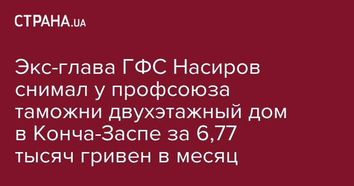 Бывший начальник Государственной фискальной службы Роман Насиров в 2016 году заключил с профсоюзом таможни договор на аренду двухэтажного дома в Конча-Заспе под Киевом всего за 6,77 тысяч гривен в месяц. Об этом в Facebook написал глава Государственной таможенной службы Максим Нефедов.