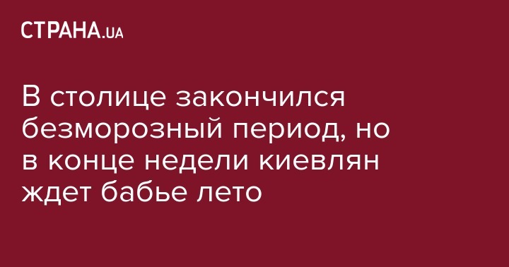 Температура в столице сегодня впервые этой осенью опустилась до -0,3 градусов, а это значит, что закончился безморозный период, который длился с 30 марта - в общем 192 дня. В обсерватории уточняют, что обычно по климатической норме это случается 18 октября, а средняя продолжительность морозного периода составляет в столице 188 дней. Несмотря на это, киевлян еще ждет "бабье лето", которое начнется в конце текущей недели.