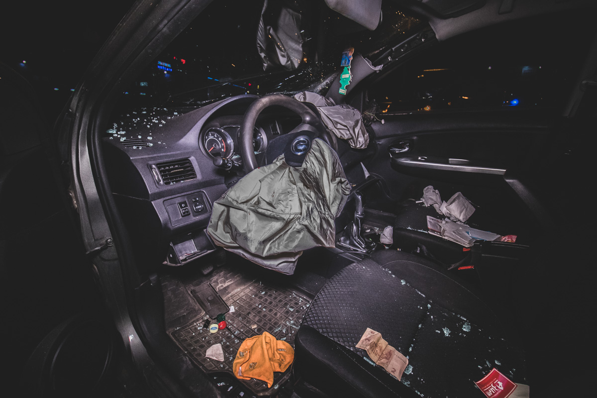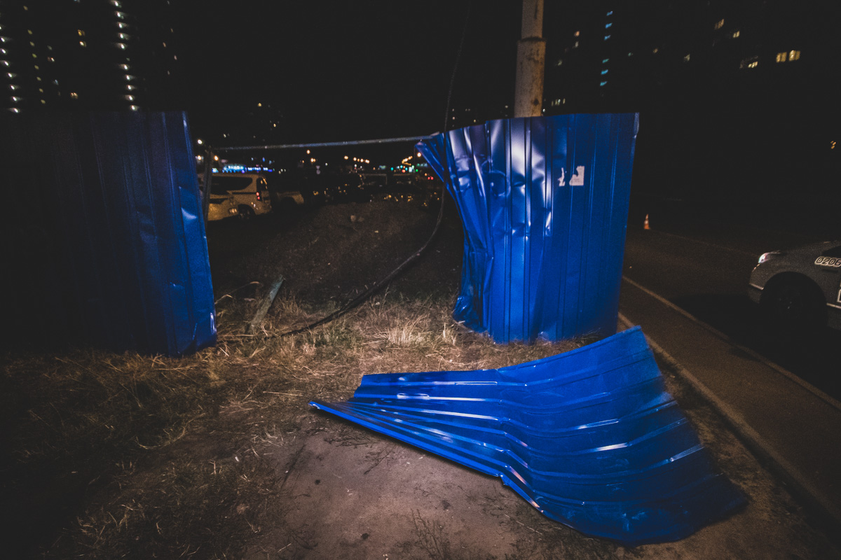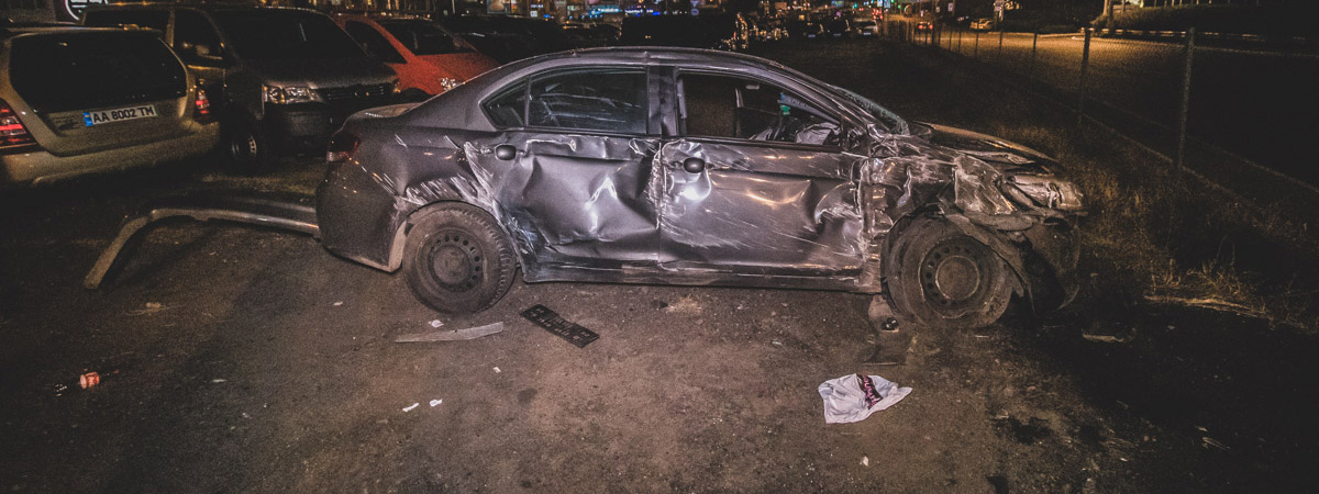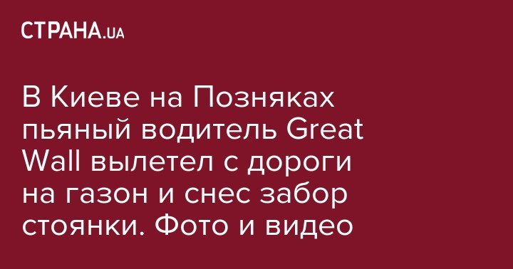 Около 21:30 водитель автомобиля Great Wall ехал по улице Григоренко в сторону улицы Гмыри. На развязке возле станции метро "Позняки" пьяный мужчина не смог справиться с управлением и вылетел на зеленую зону. Машина проехалась несколько десятков метров по газону и снесла забор автомобильной стоянки, за которым находилась насыпь. Great Wall подскочил на насыпи и перевернулся, в результате чего машина оказалась на боку.