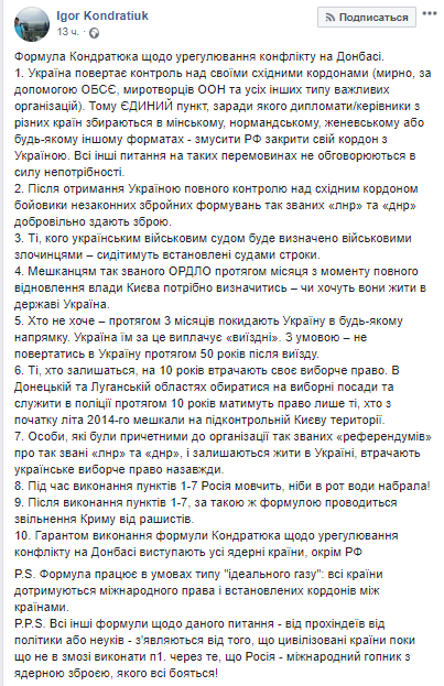 "Формула Кондратюка по урегулированию конфликта на Донбассе.