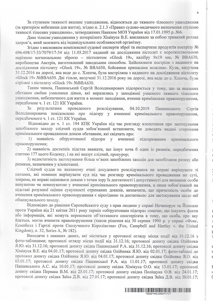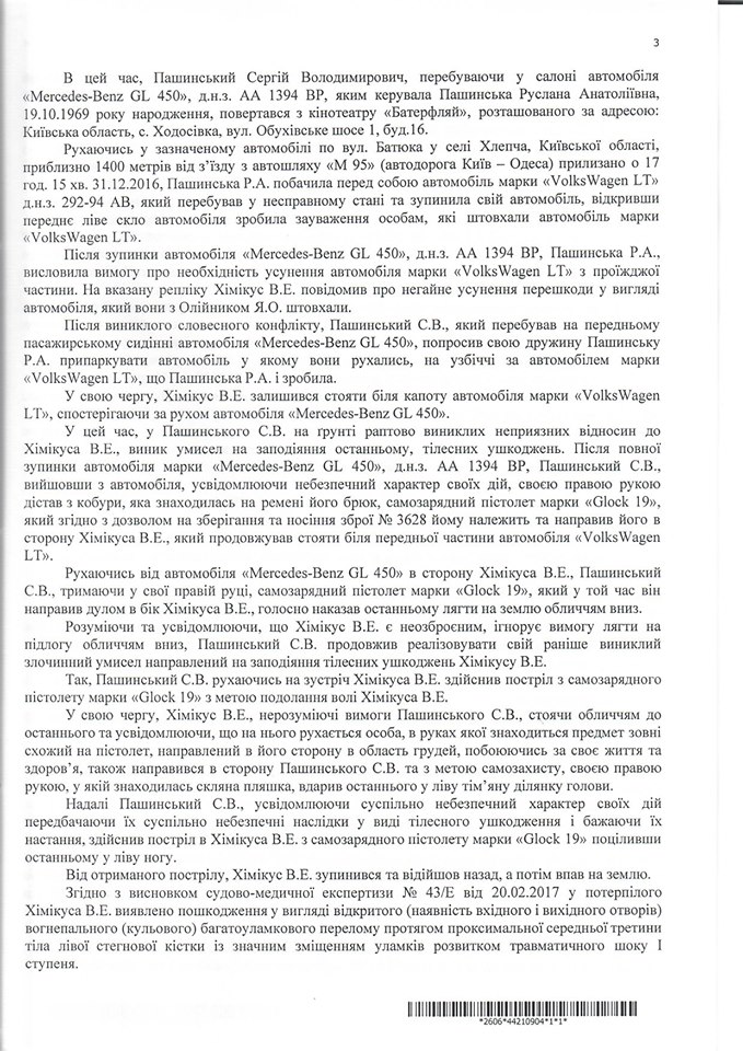 В тексте содержатся выводы следствия, которое описало, что произошло накануне Нового года между Пашинским и Химикусом, который был ранен в ногу.