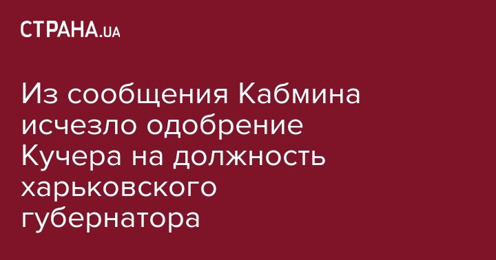 Отметим, что в первоначальном варианте сообщения также была информация об одобрении Кабмином назначения главы Харьковской ОГА Алексея Кучера, однако впоследствии упоминание о нем было удалено из сообщения.