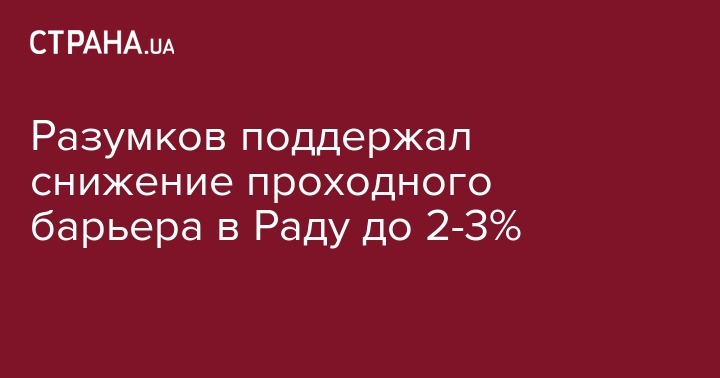 Председатель парламента Украины Дмитрий Разумков заявил, что проходной барьер для политических партий в Раду нужно снизить до 2-3%, передает Интерфакс-Украина.