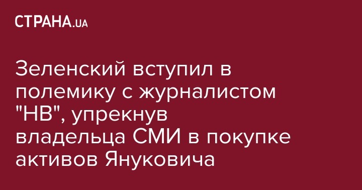 После этого Зеленский упрекнул Фиалу в покупке активов после бегства из страны Виктора Януковича и заключил, что СМИ должны быть украинскими. "Вы имеете в виду все те активы, которые после того, как Янукович сбежал, покупала компания Dragon Capital? ... Я всегда говорю о СМИ: они должны быть независимыми и украинскими. Вот сейчас мы говорим о земельной реформе, и все говорят: "Смотрите, это же наша земля. Украинская земля. Поэтому собственниками должны быть украинцы". Я тут согласен на все 100%. И это нужно менять в законе. Дальше все говорят: "А если землей владеют юрлица, их бенефициарами тоже должны быть только украинцы". А вы не думаете, что собственниками независимых СМИ должны быть украинские граждане?", - сказал Зеленский.