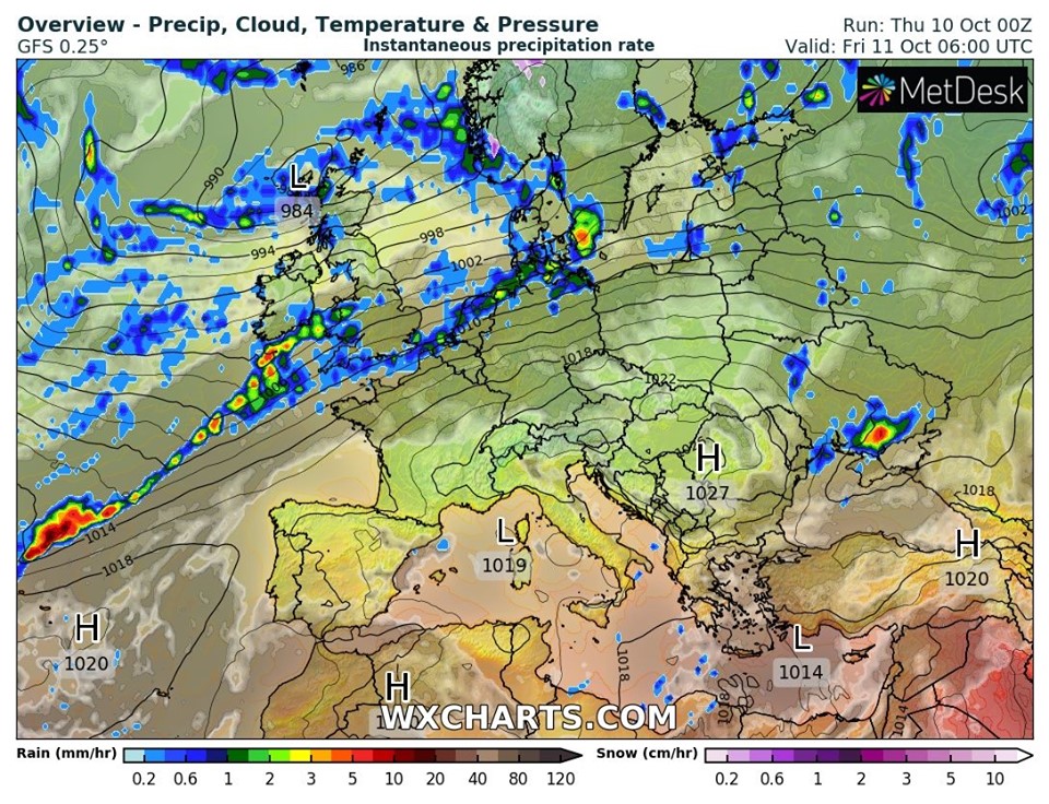 По словам синоптика, 11 октября дожди пройдут на юге и востоке Украины, кроме Харьковской области, а также в центральных регионах, кроме Винницкой области. В этих областях они могут быть сильными, поэтому Диденко рекомендует их жителям подготовьтесь к дождям. На западе и севере сохранится вероятность осадков, но небольших и локальных. Ветер будет дуть с запада, умеренный.