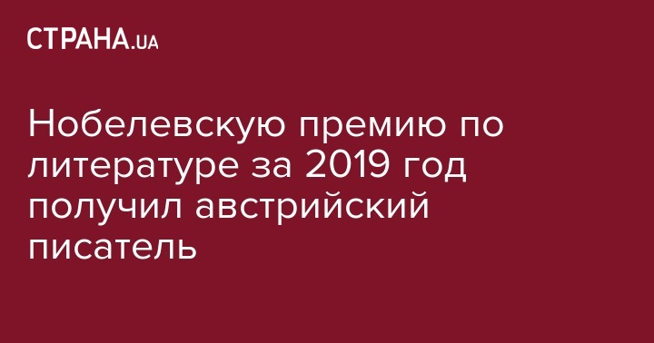 Нобелевскую премию по литературе за 2019 год получил австрийский писатель