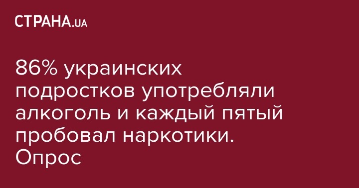 86% украинских подростков употребляли алкоголь и каждый пятый пробовал наркотики. Опрос