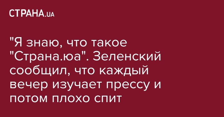 "Я знаю, что такое "Страна.юа". Зеленский сообщил, что каждый вечер изучает прессу и потом плохо спит