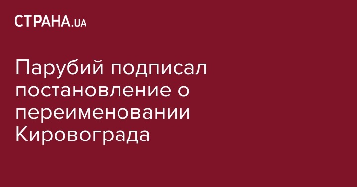Свою подпись Парубий поставил во время брифинга в парламенте, сообщает "Интерфакс Украина". "Я немедленно подписываю постановление по переименованию города Кировоград в город Кропивницкий", - сказал спикер.
