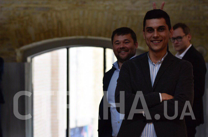 Также корреспонденты запечатлели, как глава ОПУ ставит "рожки" журналисту "Страны" Владу Бовтруку.