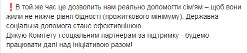 "Такая реформа (отвязки от прожиточного минимума) не приведет к уменьшению размера соцпособий! Для семей, находящихся в сложных жизненных обстоятельствах, размеры выплат будут увеличиваться ", - подчеркнула министр и добавила, что это позволит реально помочь семьям - чтобы они жили не ниже уровня бедности (прожиточного минимума).