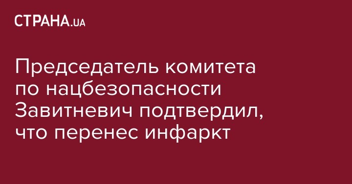 Глава комитета Верховной Рады Украины по вопросам национальной безопасности, обороны и разведки Александр Завитневич заявил, что у него действительно был инфаркт, как об этом сообщил президент Украины во время пресс-марафона. О своем здоровье нардеп написал на Facebook.