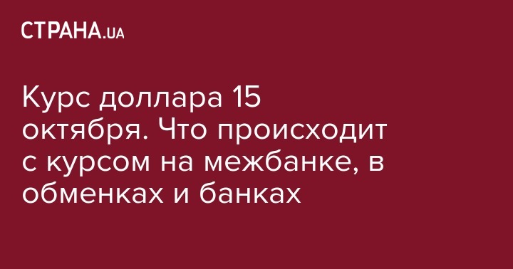 15 октября курс доллара в обменках незначительно повысился: валюту покупают за 24,78 грн, продают за 24,84 грн. Межбанк закрылся подорожанием на 13 копеек: 24,77 грн - покупка и 24,80 грн - продажа. В банках вечером доллар покупают от 24,30 до 24,81 грн, продают - от 24,75 до 25,40 грн.