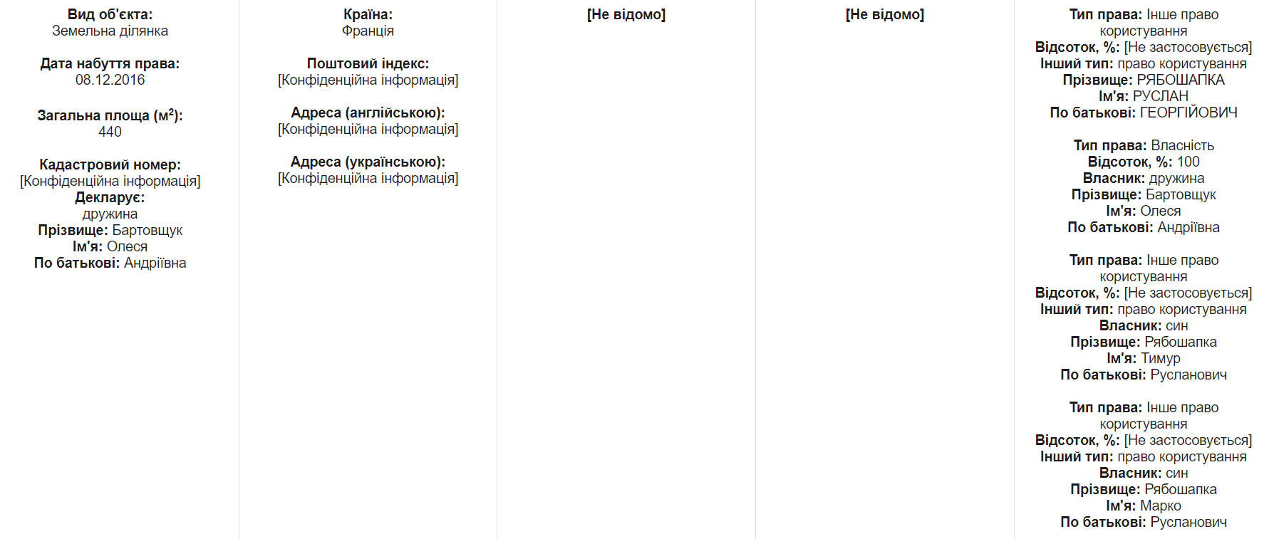 Также семья генпрокурора владеет домом и земельным участком в этой европейской стране. И то, и другое было куплено в конце 2016 года - то есть когда Рябошапка работал членом НАПК.