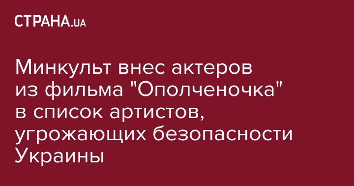 Министерство культуры Украины обновило список деятелей культуры, которые угрожают национальной безопасности страны. За октябрь 2019 года в список внесли 4 человека, все они играли в фильме "Ополченочка", который снимался на оккупированной территории Донбасса.
